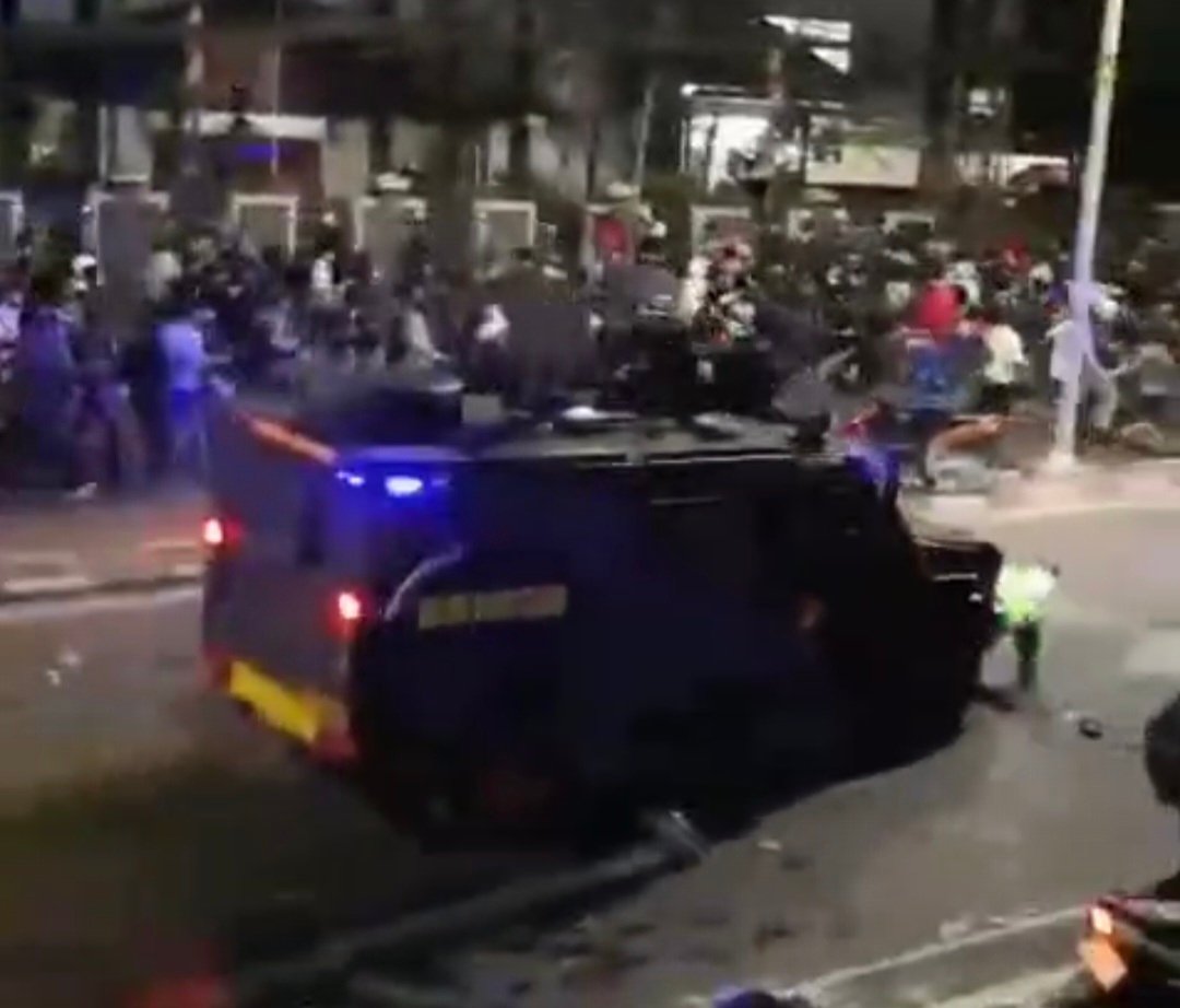 detik-detik sebuah mobil rantis Brimob Polri menabrak hingga melindas pengemudi ojek online (ojol) saat membubarkan aksi massa di kawasan Pejompongan, Tanah Abang, Jakarta Pusat.(Istimewa)